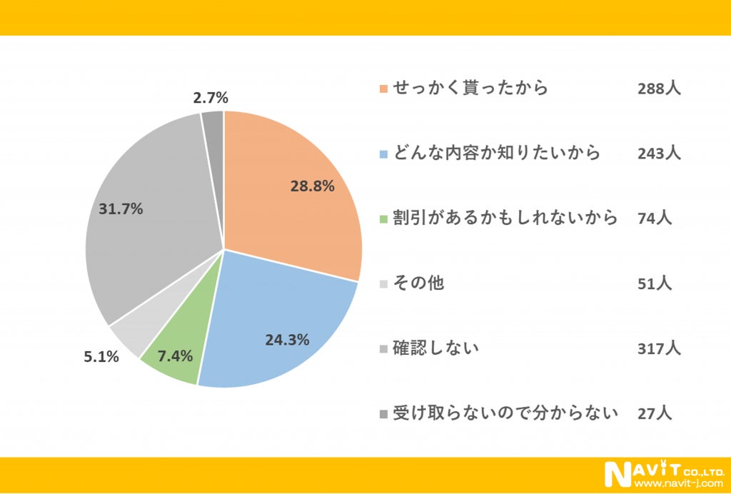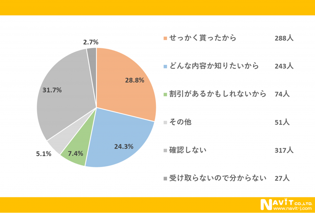 ポケットティッシュ内の広告を確認する理由は、「せっかく貰ったから」が最多