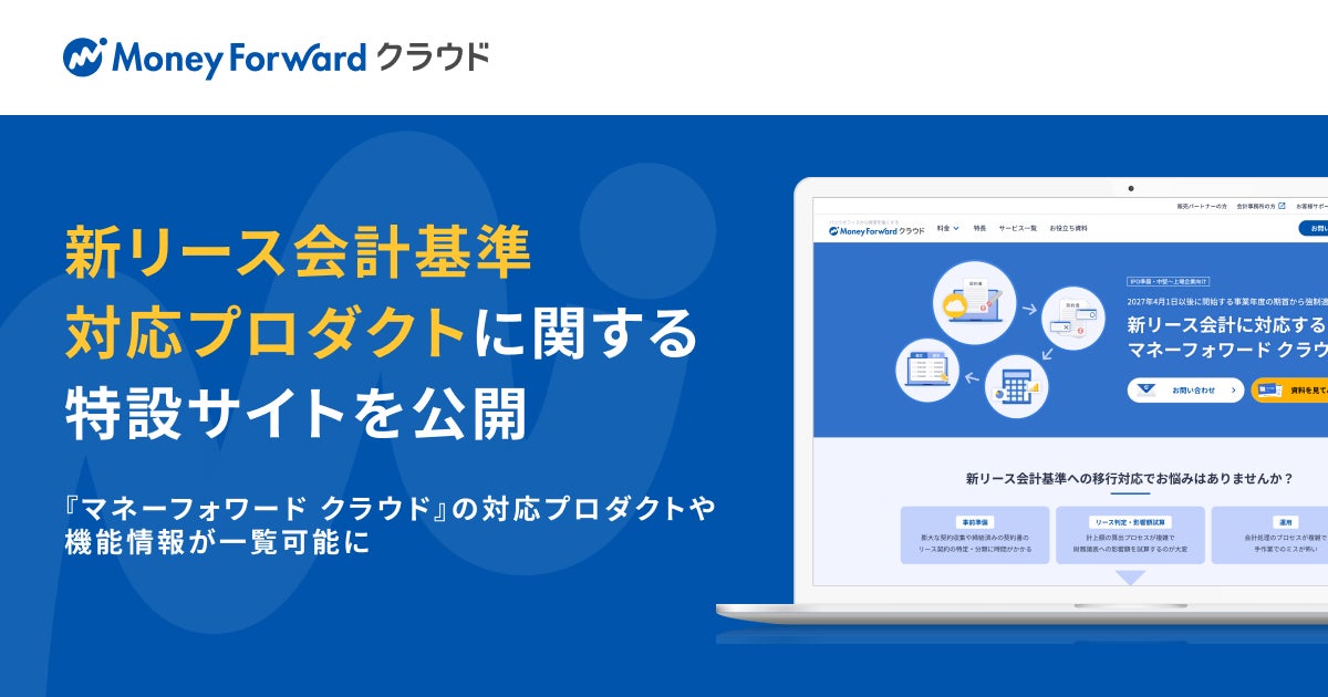 株式会社マネーフォワードは、『マネーフォワード クラウド』における新リース会計基準対応を一覧できる特設サイトを公開しました。また、2025年9月9日(火)に実務対応における法的解釈や判断基準を学べる法務・経理担当者向けのセミナーを開催します。