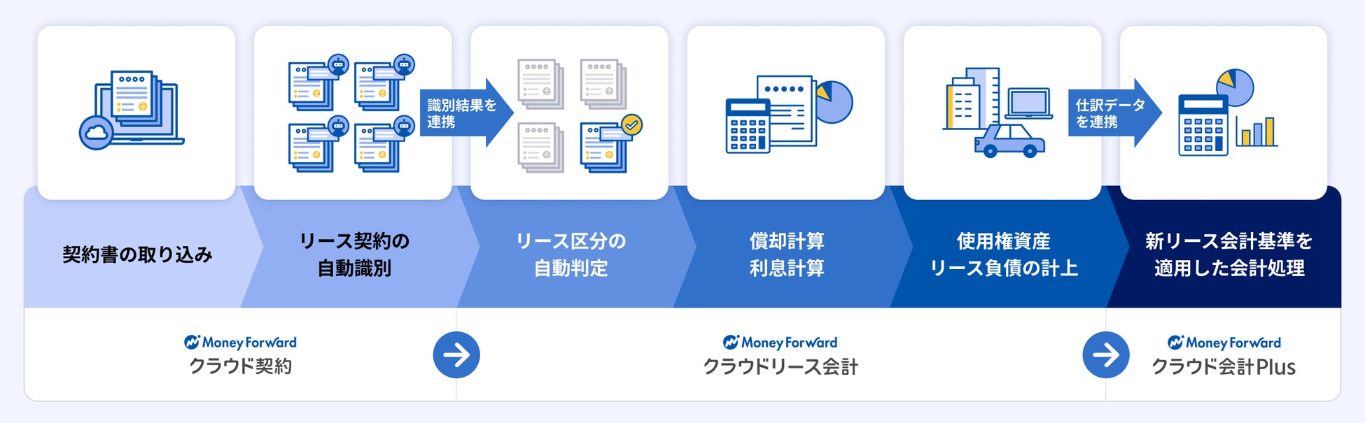 「AIリース識別機能」を提供し、リースと識別された契約情報を『マネーフォワード クラウドリース会計』に連携する機能を提供予定です。※2