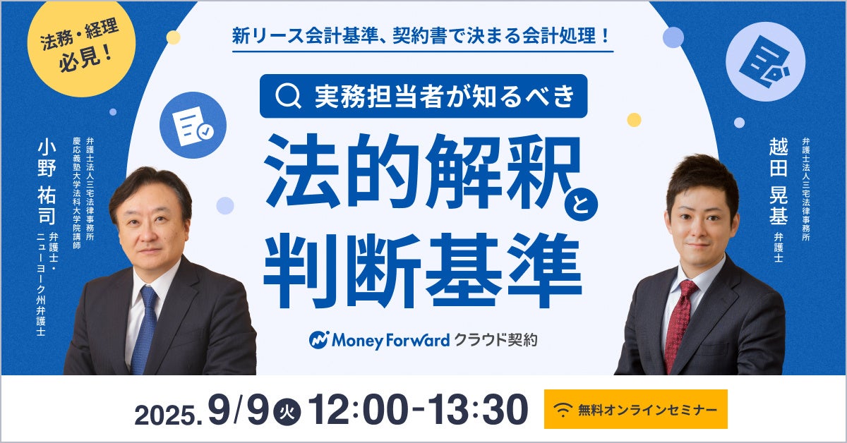 2025年9月9日(火)、法的解釈や判断基準を学べる法務・経理向けオンラインセミナーも開催