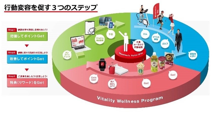 住友生命「Vitality」=リスクに備えるだけでなくリスク自体を減らしていくための行動変容を促す健康プログラム。