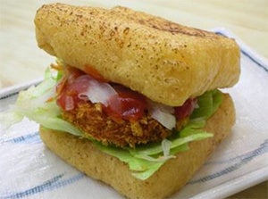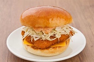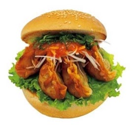 宇都宮餃子会とのコラボレーションにより誕生した栃木県内4店舗限定メニュー。マルシンフーズの野菜たっぷりの餃子を揚げ、まるごとサンド。エビチリソース、白髪ねぎ、シソの葉をトッピングした中華風のご当地バーガー。