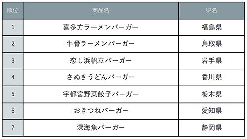 手軽に食べられて人気の「バーガー」。全国各地には、その土地ならではの食材を使用したご当地バーガーがあるのをご存知でしょうか。ブランド牛を使ったガッツリ系のものや、意外な組み合わせが目を引くユニークなものまで、そのジャンルや種類もさまざまです。今回はそんな数ある中から、ユニークだと思う個性派ご当地バーガーのランキングをご紹介します。1位2位はラーメンをモチーフにしたバーガーがランクインしていますが、トップ7のいずれも、珍しい食材や地元の名物を使った見た目も組み合わせもあっと驚く個性豊かな変化球バーガーが揃う結果となりました。