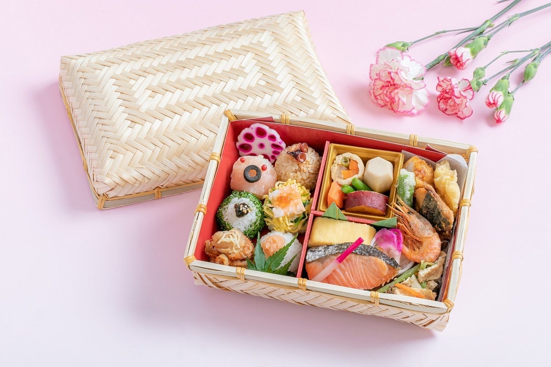 日頃の感謝の気持ちを込めて贈るお弁当。一口サイズのてまり寿司や季節のおかず、彩り豊かなちらし寿司などを盛り込んだ、母の日限定の寿司弁当です。