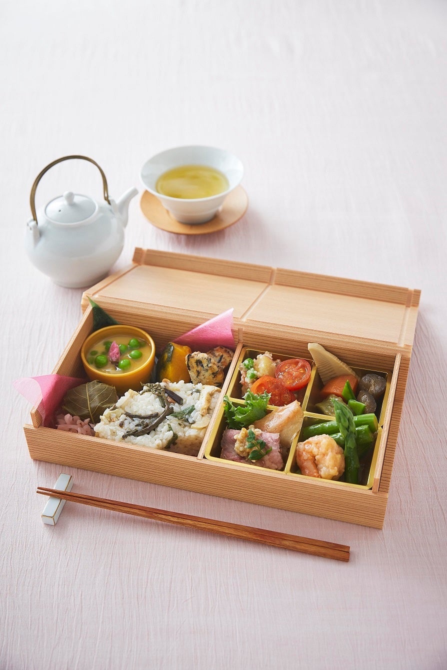 母の日に合わせて、季節の炊き込みご飯と揚げ物・焼き物・煮物・和え物・甘味など多彩なメニューが入ったお弁当。