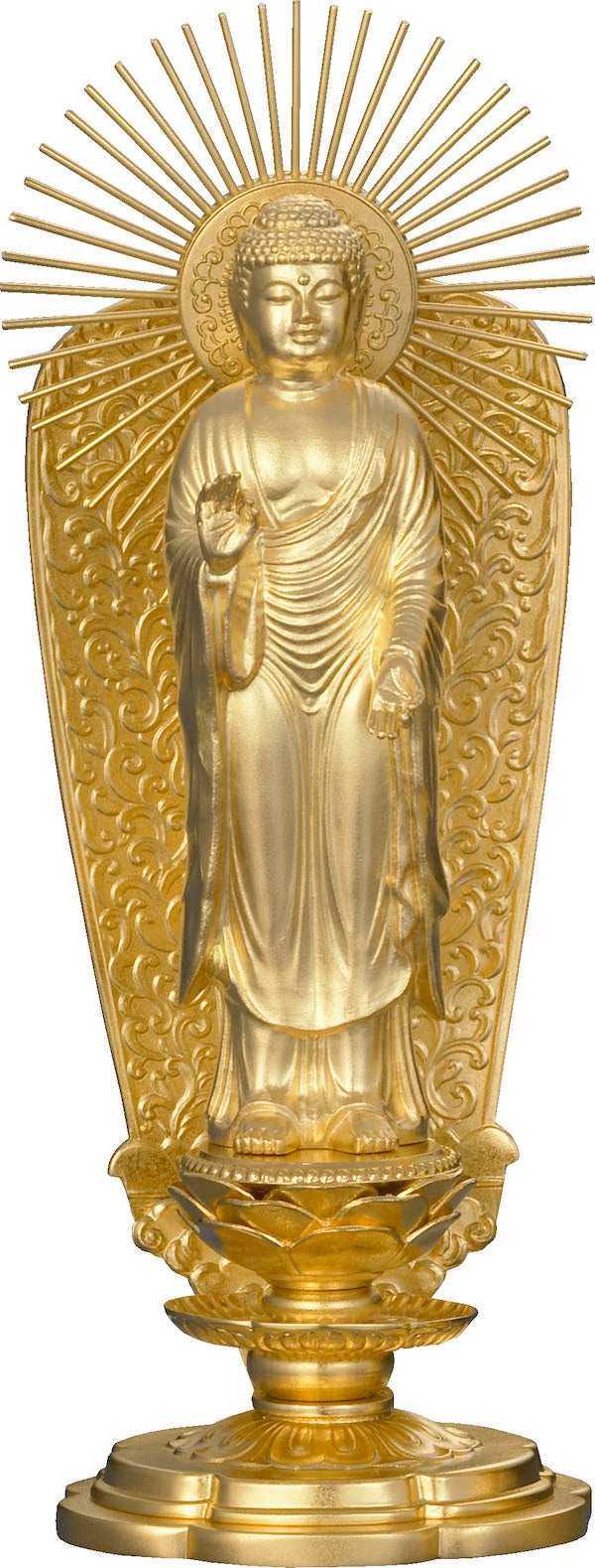 3型 65g 本尊全長 90mm 税込1,826,000円/3.3型 100g 本尊全長 100mm 税込2,684,000円/4 型 200g 本尊全長130mm 税込5,995,000円/6.2型 400g 本尊全長195mm 税込11,121,000円
