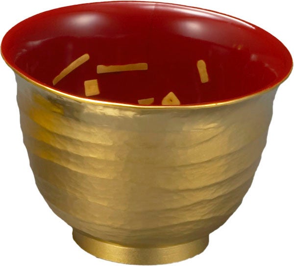 ↑●純金製玉露茶碗<呂・朱>各75g 直径 55×高さ37mm 各税込2,189,000円