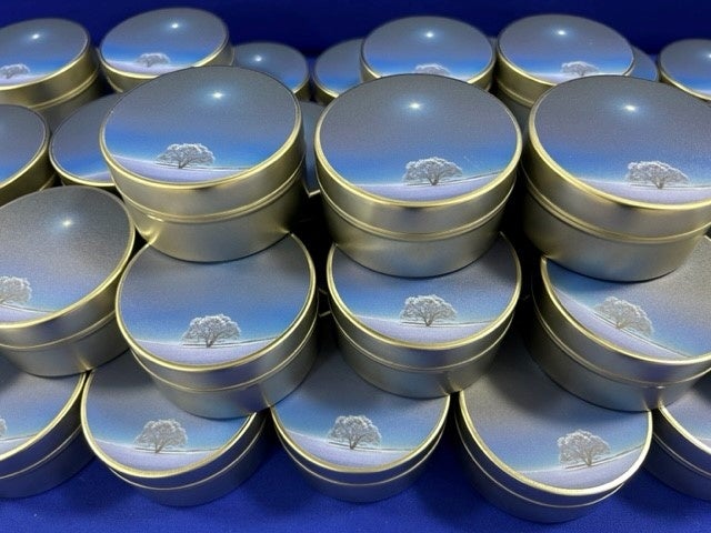 星形の米菓子。砂糖で作られた金平糖とは異なりもち米(あられ)に砂糖蜜をかけて作られています。KAGAYAの作品「月光浴びるハルニレの木」をパッケージに使用。