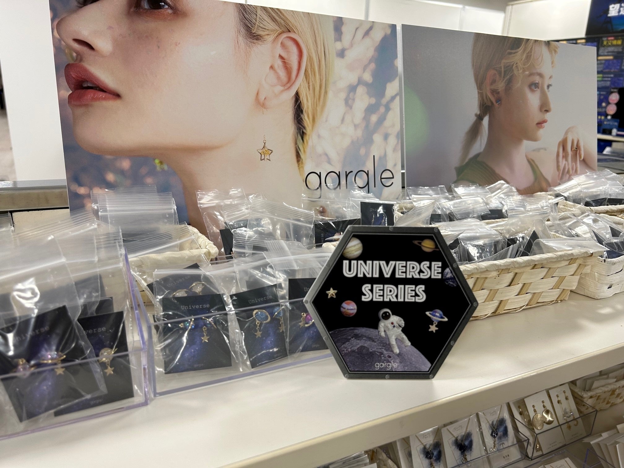 アクセサリーブランドgargle(ガ―グル)の宇宙シリーズのピアスやネックレス、リング。惑星、星座、宇宙飛行士などをモチーフにしたシリーズを展開。