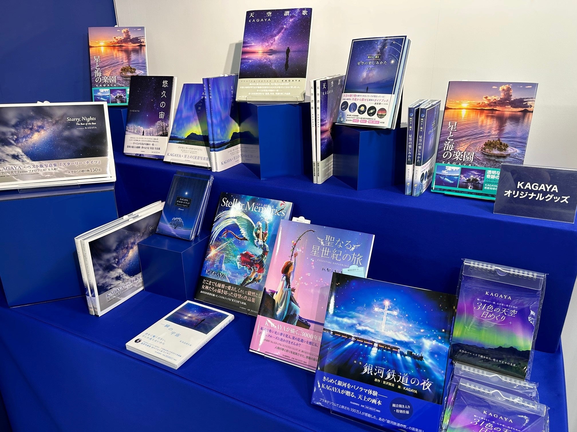 同時開催「KAGAYA星空の世界展 カメラがとらえた天空の贈り物たち」の展覧会関連書籍、グッズも販売。
