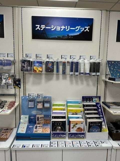ステーショナリーグッズコーナーには、ジャポニカ学習帳各種や星空えんぴつ、スターパーティ―の付箋やメモ帳など。