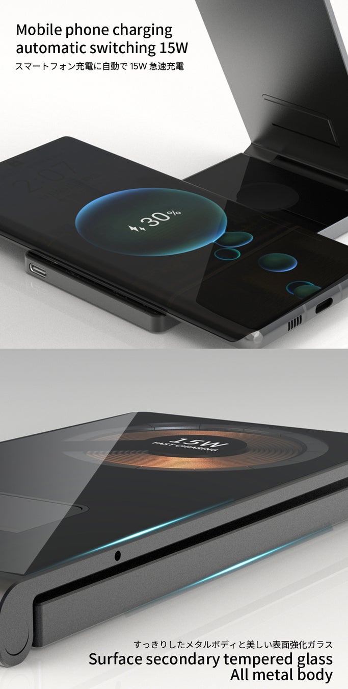 スマートフォン:最大15W急速充電 (対応 10W/7.5W/5W)