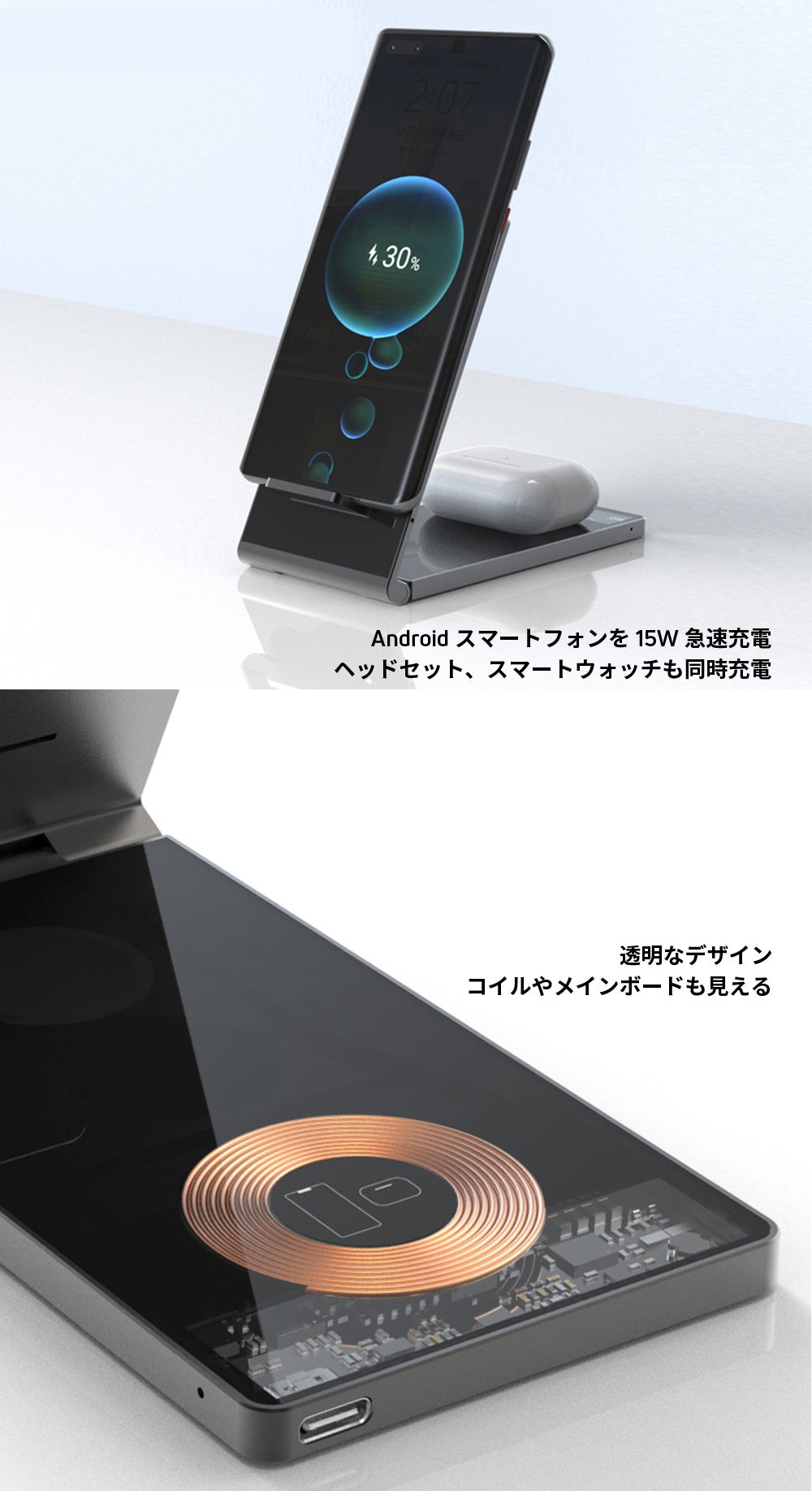 - Qiワイヤレス対応、Androidスマートフォンを15W急速充電