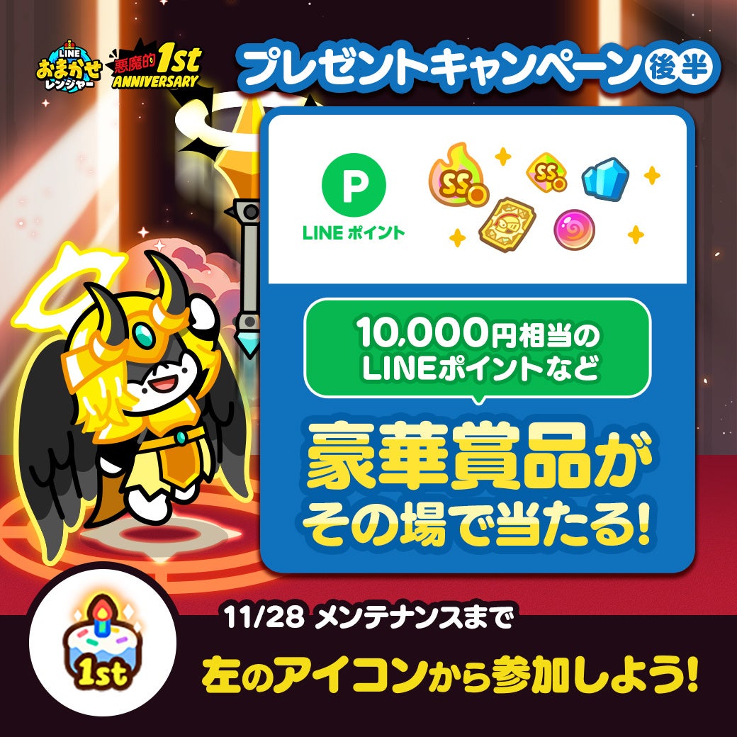 LINEヤフー株式会社は、当社が展開する放置系RPG「LINE おまかせレンジャー」(iPhone・Android対応/無料)がサービス開始から1年を迎えたことを記念し、大型イベント「悪魔的1stアニバーサリー」を開催中です。
