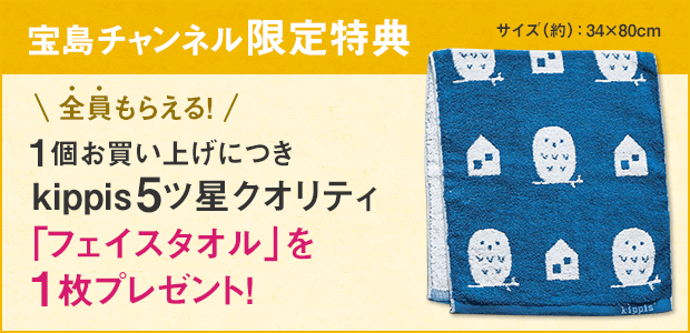 - 「宝島チャンネル」限定特典! kippis 5ツ星クオリティ フェイスタオルをプレゼント!!