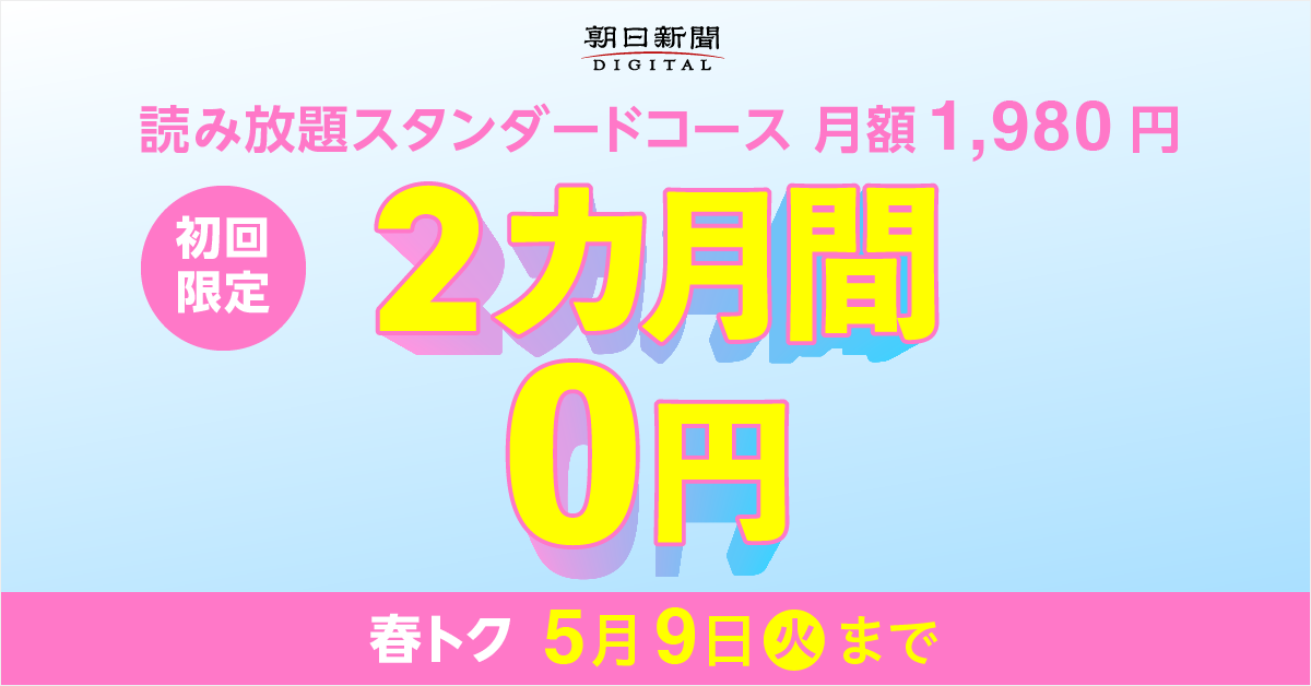 株式会社朝日新聞社(代表取締役社長:中村史郎)が運営するニュースサイト「朝日新聞デジタル」(https://www.asahi.com/ )は、3月23日(木)から5月9日(火)まで『春トク』キャンペーンを実施します。