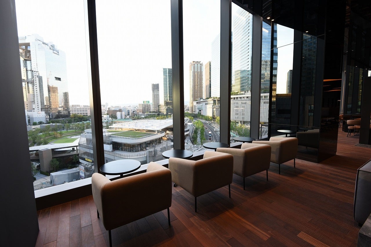 国内33店舗目(大阪市内では3店舗目)となる「SHARE LOUNGE」は、緑豊かなうめきた公園を眼下に望む解放感にあふれた空間です。ドリンクやフードを楽しみながら複数人でご利用いただけるソファ席やボックス席、仕事や勉強・読書などプライベートな1人時間にお使いいただけるワークスペース席、オンラインミーティングも行える個室ブースなど、多様な席種を120席備えています。