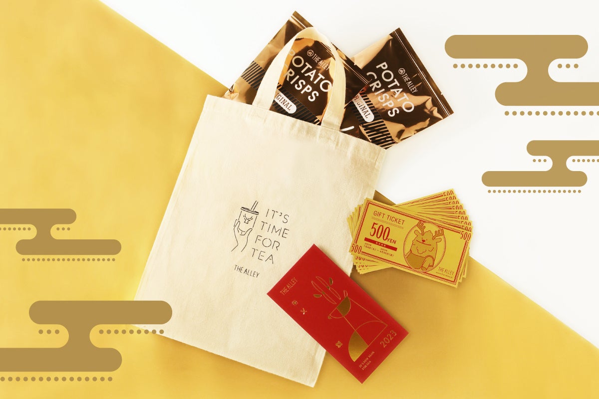 お茶に恋をする本格派ティーストア「THE ALLEY(ジ アレイ)」(http://www.the-alley.jp/)は、2022年の感謝の気持ちを込めて4500円分のドリンクチケットやオリジナルポテトクリスプを詰め込んだ『HAPPY BAG』を12/26(月)より数量限定で販売いたします。
