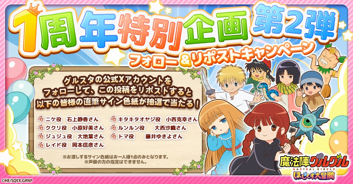 総ユーザ数200万人突破目前!『魔法陣グルグル ほしくず大冒険』1周年記念キャンペーン開催!