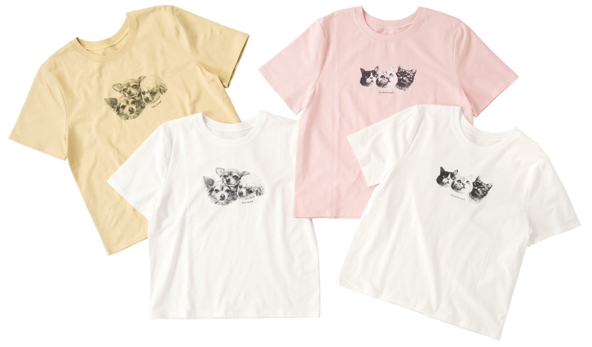 【ニトリのアパレルブランドN+】愛らしい表情に癒される。モノクロ配色の「犬・猫フォトTシャツ」が新登場