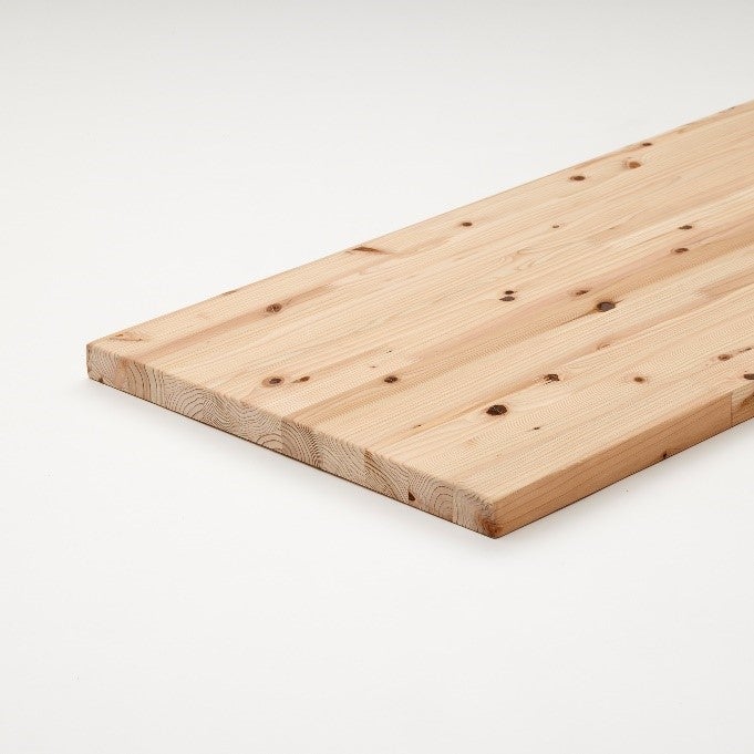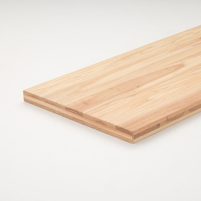 ラミナと呼ばれる製板を集成して作った薄い板を、繊維方向が直行するように三層に貼り合わせているので、強度や形状保持性が良いのが特徴です。 中国地方の木材を使用しています。