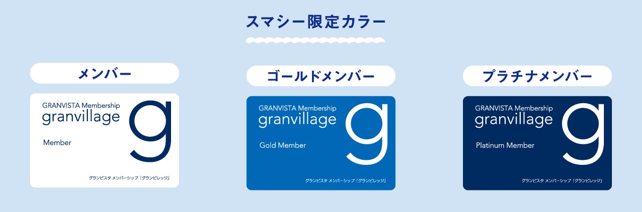 グランビスタ ホテル&リゾートが運営する全国にあるホテルや旅館、レジャー施設をお得にお楽しみいただける、入会金・年会費が無料のグランビスタメンバーシップ「グランビレッジ」の会員証に、神戸須磨シーワールド・神戸須磨シーワールドホテルの開業を記念した「スマシー限定カラー」が期間限定で登場いたします。光にあふれた海から深海をイメージした深いブルーまで、ステータスごとに異なる3タイプが誕生いたしました。
