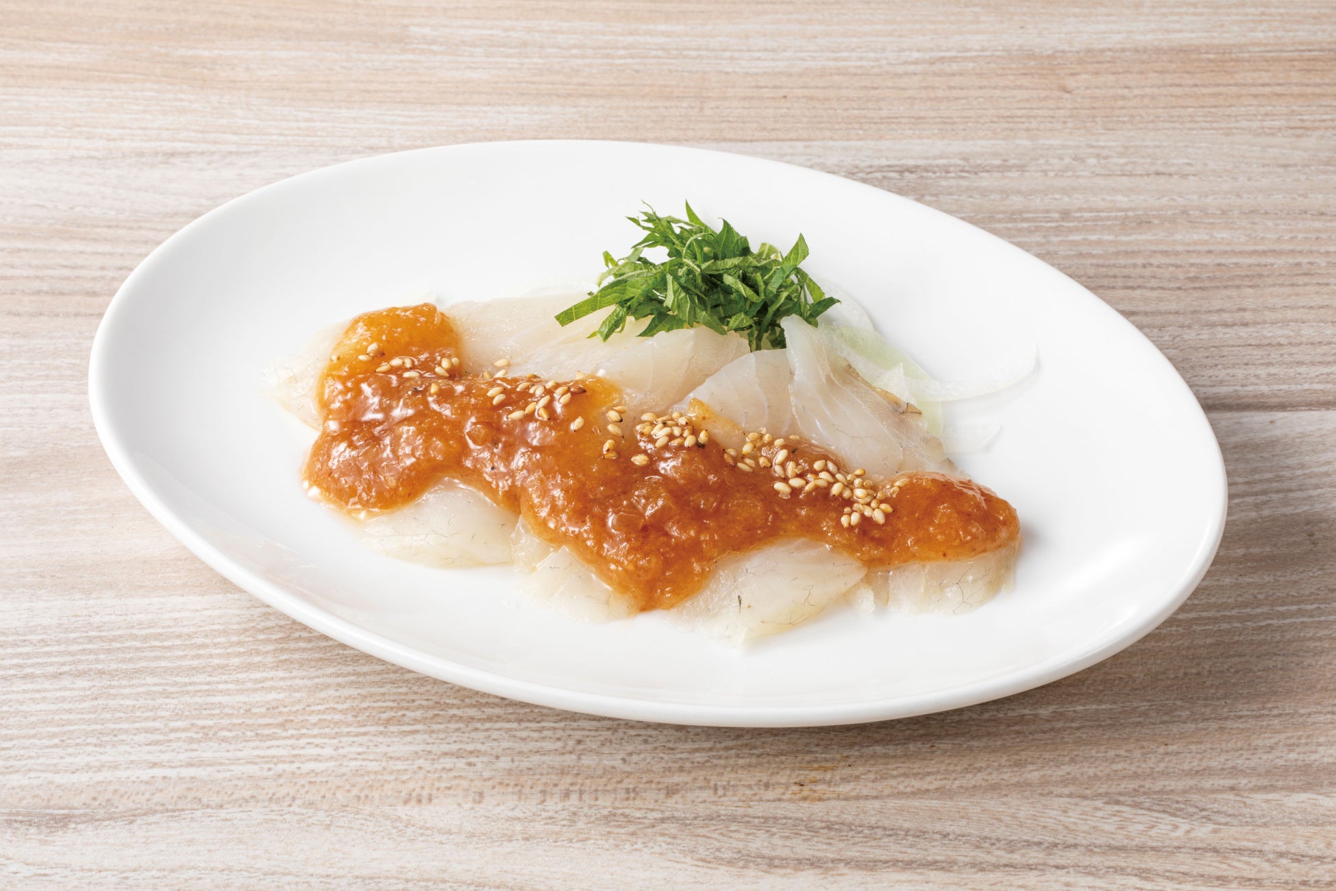 「天然スズキの刺身」、「天然スズキの梅パッチョ」に使用するスズキの仕入れについて、大阪泉州産の入荷が現在不安定となっているため、一部店舗にて宮城県産、瀬戸内産の天然スズキをあわせて提供させていただいております。