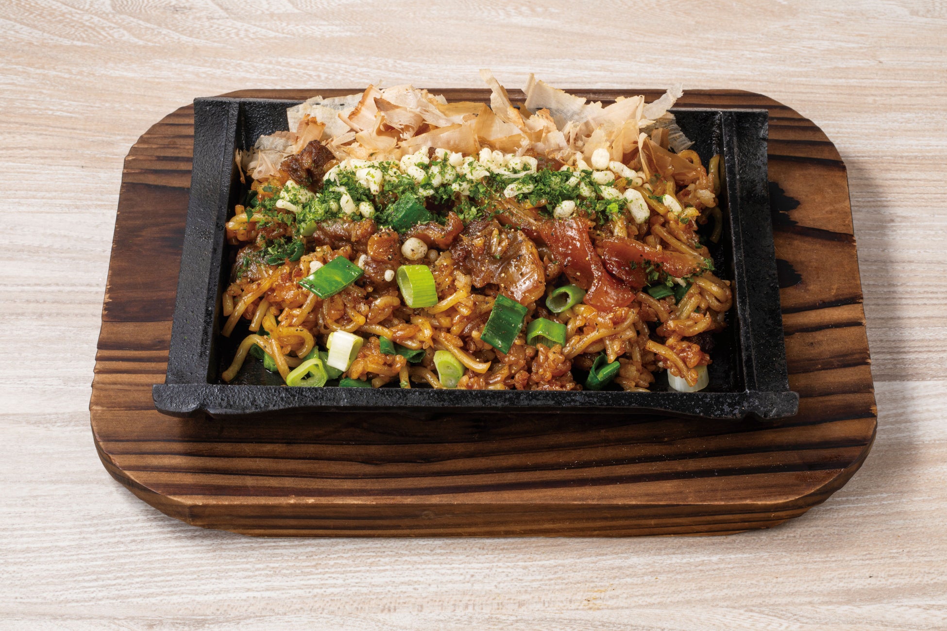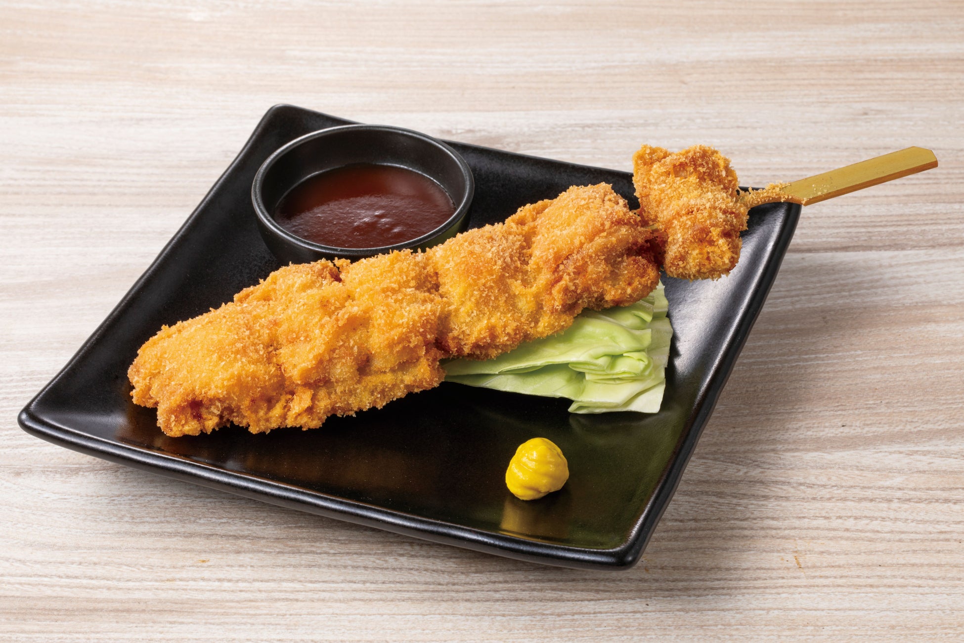 今回ミライザカでは、関西地方の地元グルメを集めました。大阪・泉州産の天然スズキを使用したお刺身と梅風味のカルパッチョ。食べごたえ抜群の全長約24cmの焼き鳥串で作ったジャンボ串カツ。さらに、関西定番の「肉吸い」や、関西名物を全部のせと題し 九条ネギをたっぷり混ぜ込んだそばめしに牛すじやこんにゃくを甘辛く煮込んだ神戸名物“ぼっかけ”をのせた「ネギ焼きぼっかけそばめし」をご用意。