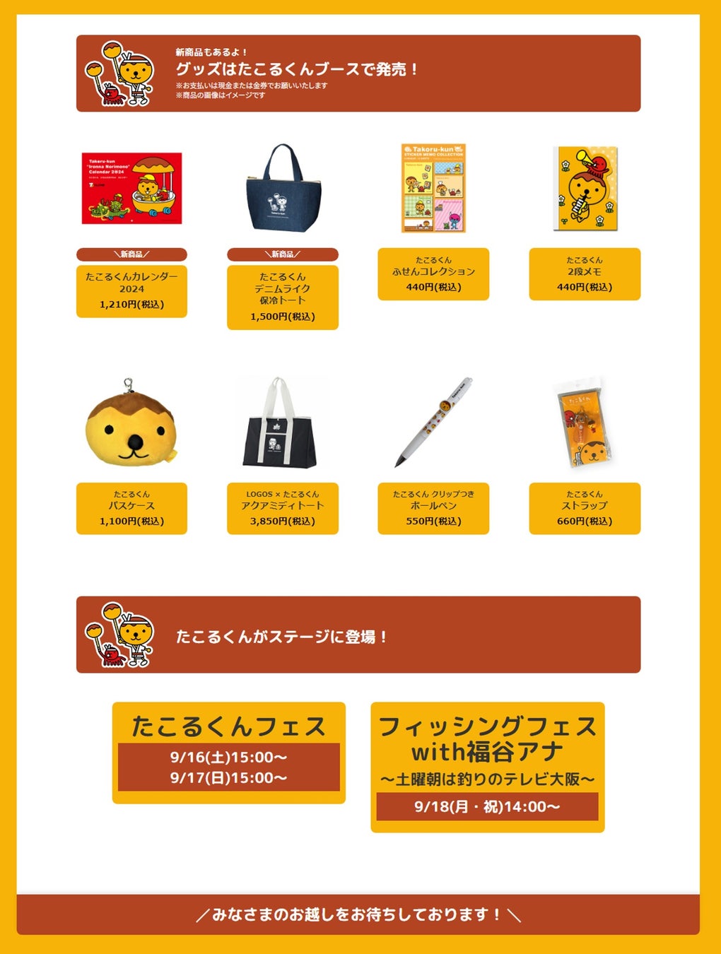 テレビ大阪ブース「たこるフェス!」では2024年たこるくんカレンダーや新グッズも発売!