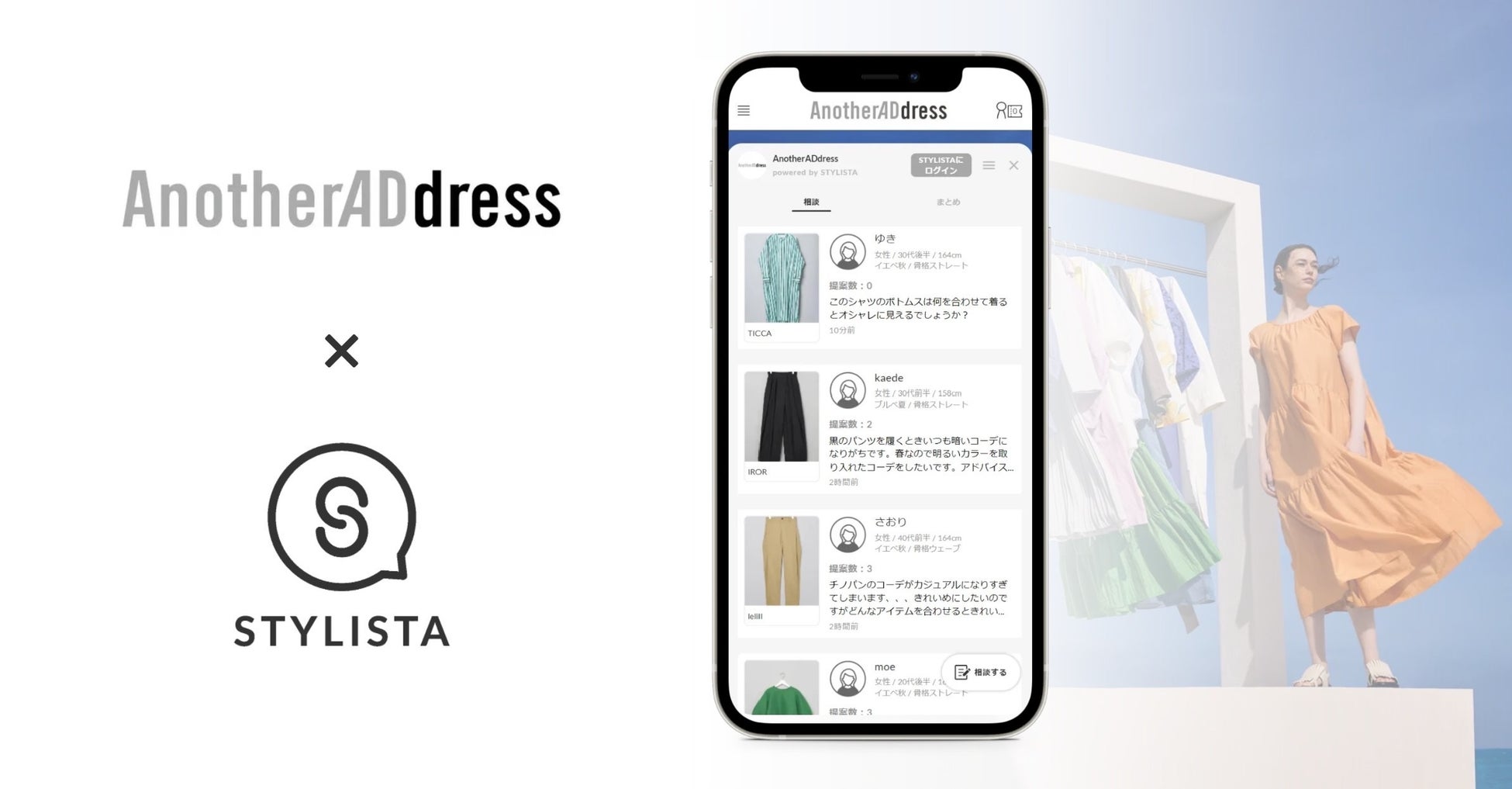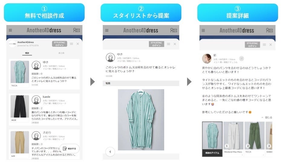 2021 年 3 月に取り扱いブランド数 50 でスタートした AnotherADdress は、2022 年 3 月には 2 倍以上となる 113 へとブランドを拡大し、累計約 8,500 名※のお客様にご登録いただくまでに成長しました。お客様から「コーディネートを気軽に相談したい」、「自分の持っている洋服と合うか心配」などのご意見をいただき、“レンタルや買い物で失敗したくない“というお客様の変化する購買行動を捉え、店頭のように相談できる環境をサイト上に構築できないかという課題の解決策として「STYLISTA」を試験的に導入することにいたしました。スタイリストへの相談を通じてレンタルのハードルを下げ、コーディネートのイメージが付くことでレンタル後の返品率も下げられることを期待しています。また、株式会社 SPRING OF FASHION の 0→1 の価値を創り、スタートアップならではの姿勢でファッション業界を切り開いていこうという志に共感し、今後も新しいファッション体験を創造しユーザビリティの高いサービスを提供するために、革新的で成長スピードの速いスタートアップ企業との連携を進めてまいります。※2022 年 5 月現在