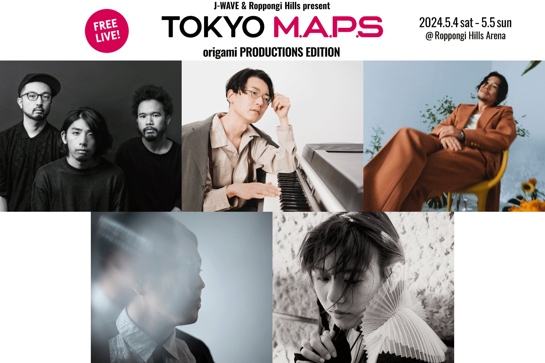 ラジオ局J-WAVE(81.3FM)は、ゴールデンウィークの5月4日(土)、5日(日)の2日間、六本木ヒルズと共催でフリーライブイベント「J-WAVE & Roppongi Hills present TOKYO M.A.P.S origami PRODUCTIONS EDITION」を六本木ヒルズアリーナで開催いたします。