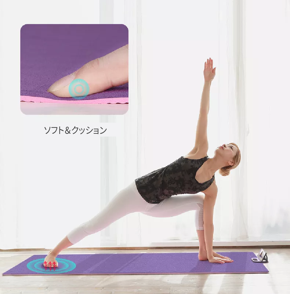 スマホスタンドがついているため、ヨガの初心者でも動画を見ながら安心してトレーニングしていただけます。