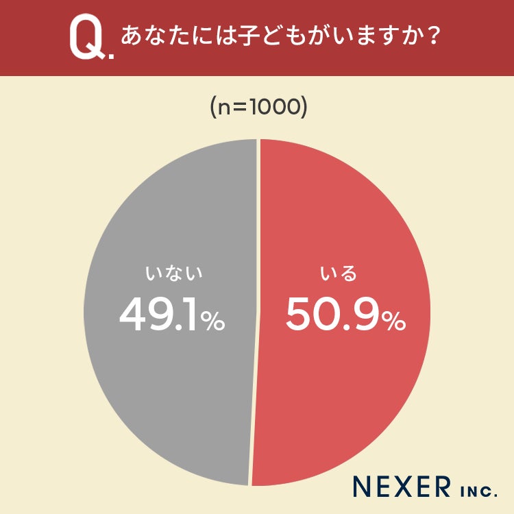 今回のアンケートでは、子どもがいる方の割合はおよそ半数のようです。