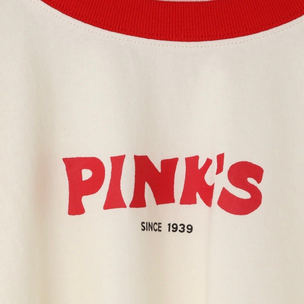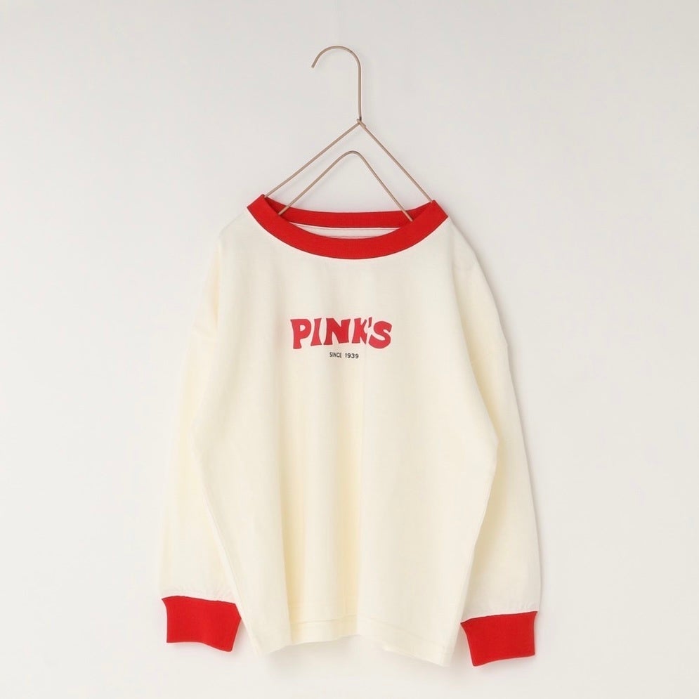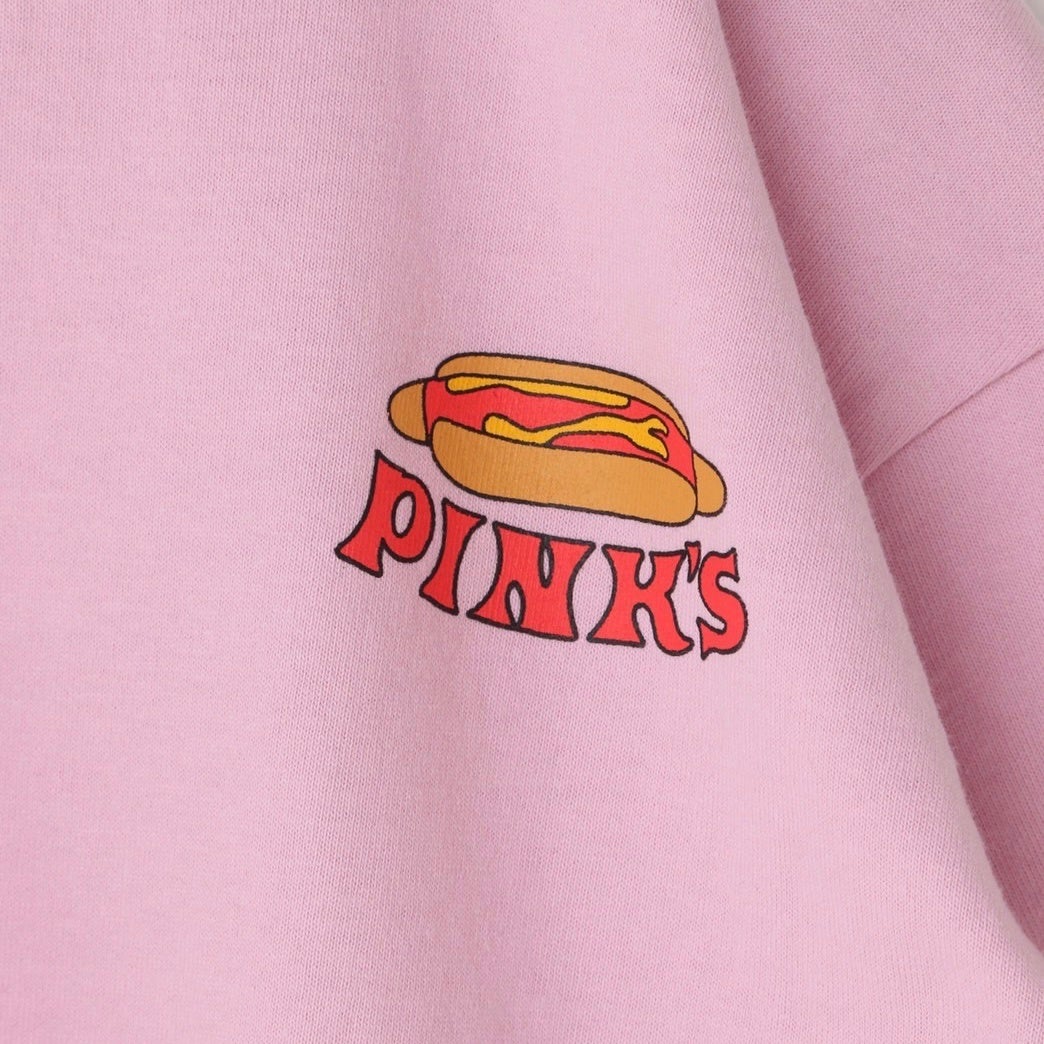 フロントにホットドッグ、バックにはPINKSのメニュー表がプリントされたロングTシャツ。