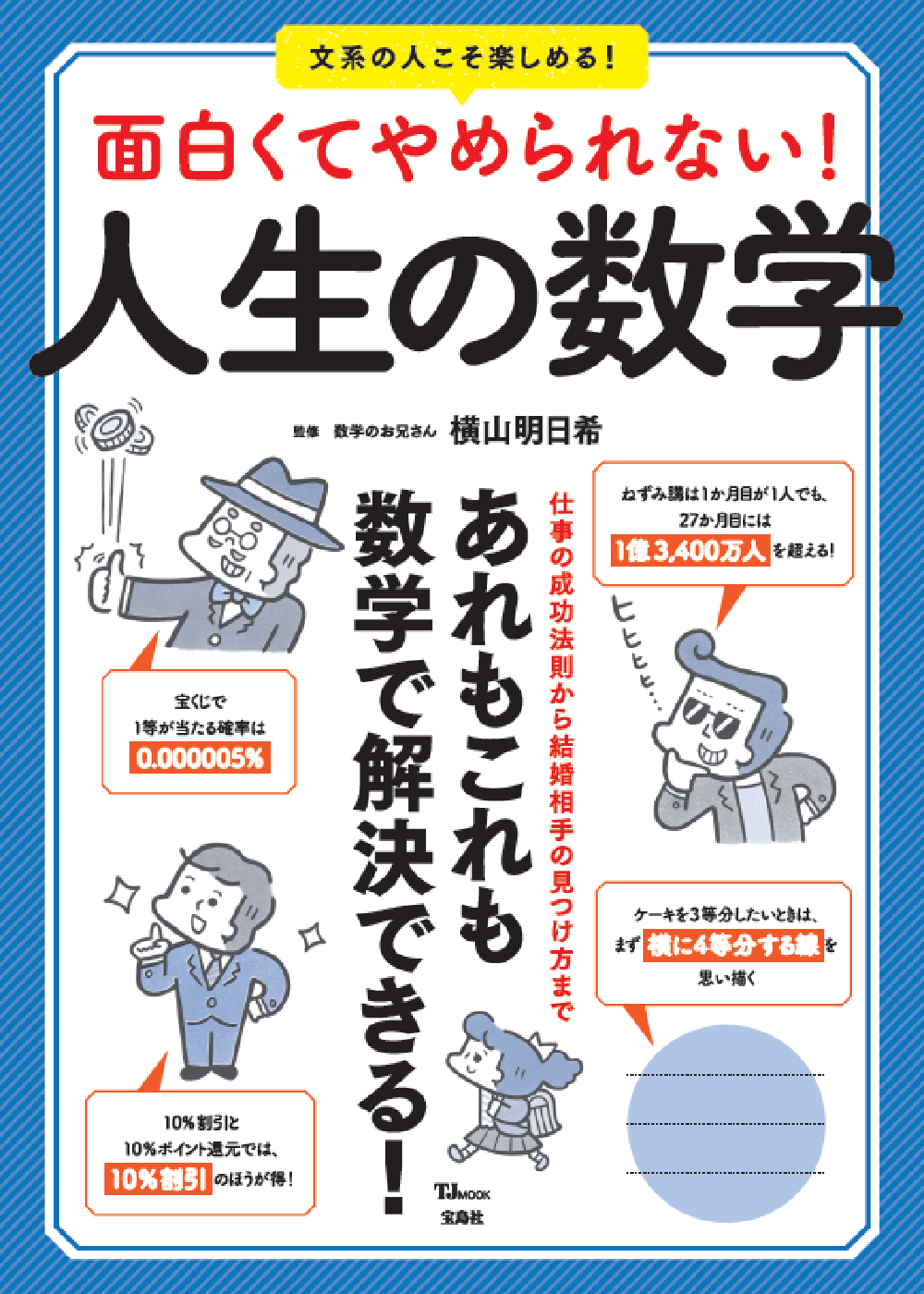 株式会社宝島社(本社:東京都千代田区、代表取締役社長:蓮見清一)は、横山明日希さん監修の『面白くてやめられない! 人生の数学』を2022年6月13日(月)に発売します。