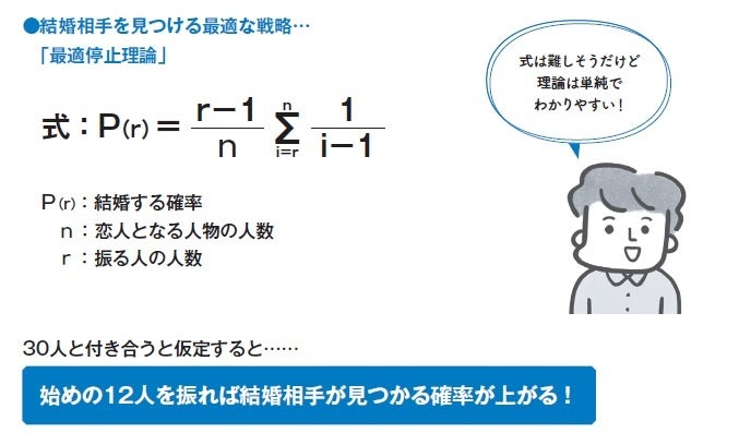 「最適停止理論」という数学の分野を利用し、結婚相手を見つける戦略を立てられます。