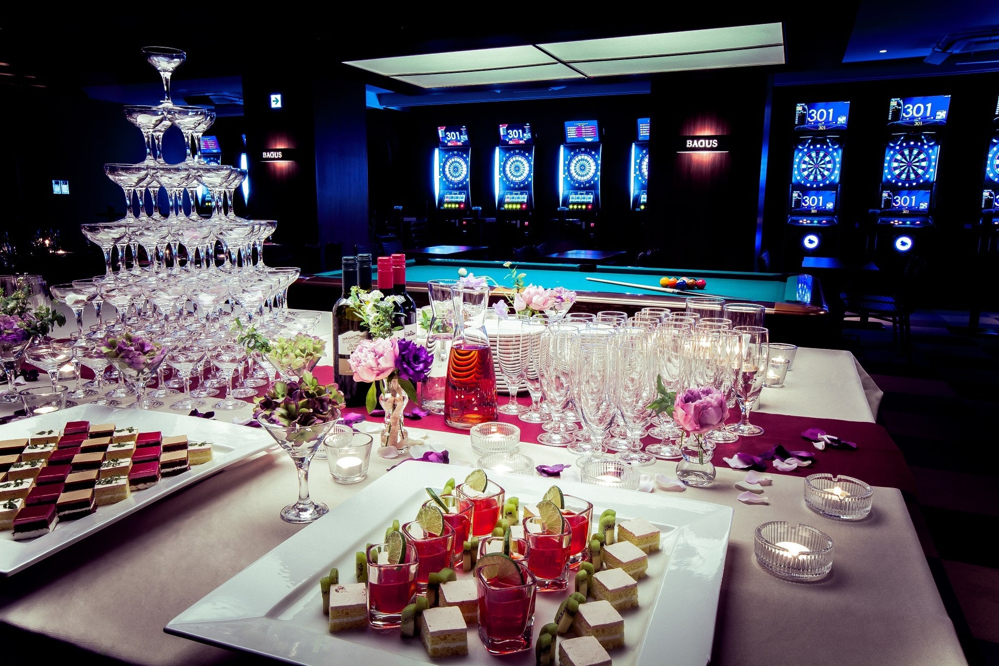 フードはアミューズメントに合う手軽なメニューに加え、専属シェフ考案のパーティープラン専用コースもご用意している他、150種類以上の豊富なアルコールドリンクも取り揃えております。