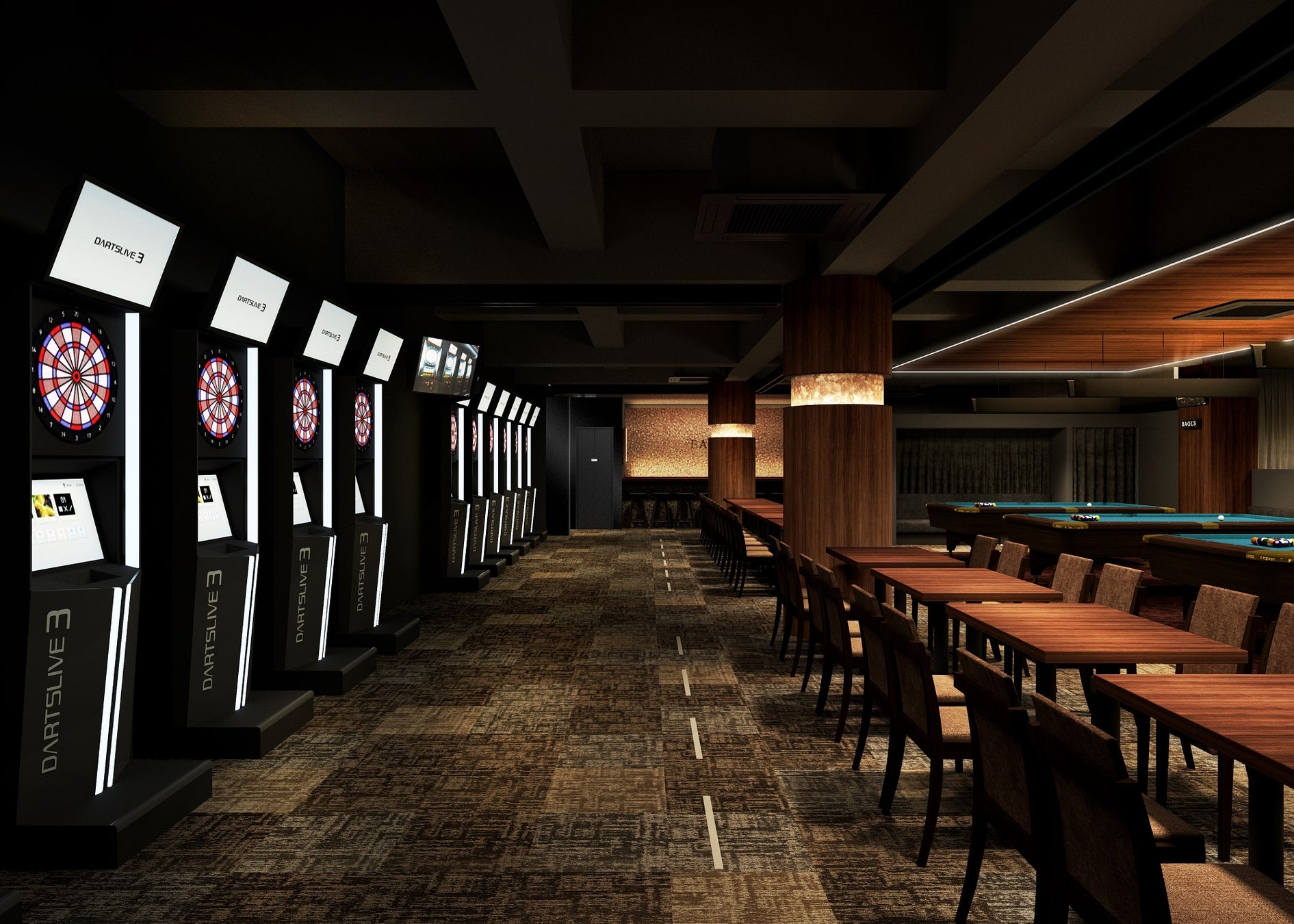 ビリヤード・ダーツ・シミュレーションゴルフ・卓球・カラオケ完備のマルチなエンターテインメント空間