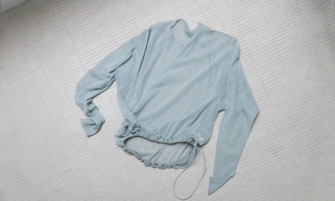 裾のストリングスで気分やスタイリングに合わせて丈感を調整できるメッシュ素材のプルオーバー。