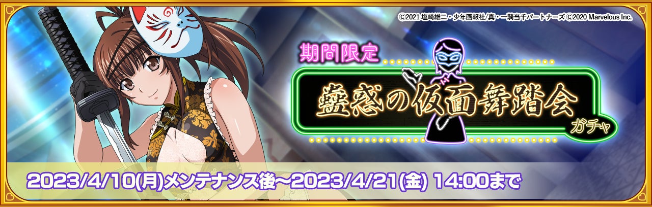 株式会社マーベラス(代表取締役社長 佐藤澄宣/所在地:東京都品川区)は、大人気シリーズ「一騎当千」のAndroid/iOS向け新作ゲームアプリ『一騎当千エクストラバースト』で、2023年4月10日(月)からシナリオイベント「妍姿艶質 仮面チャイナ」を開始したことをお知らせいたします。