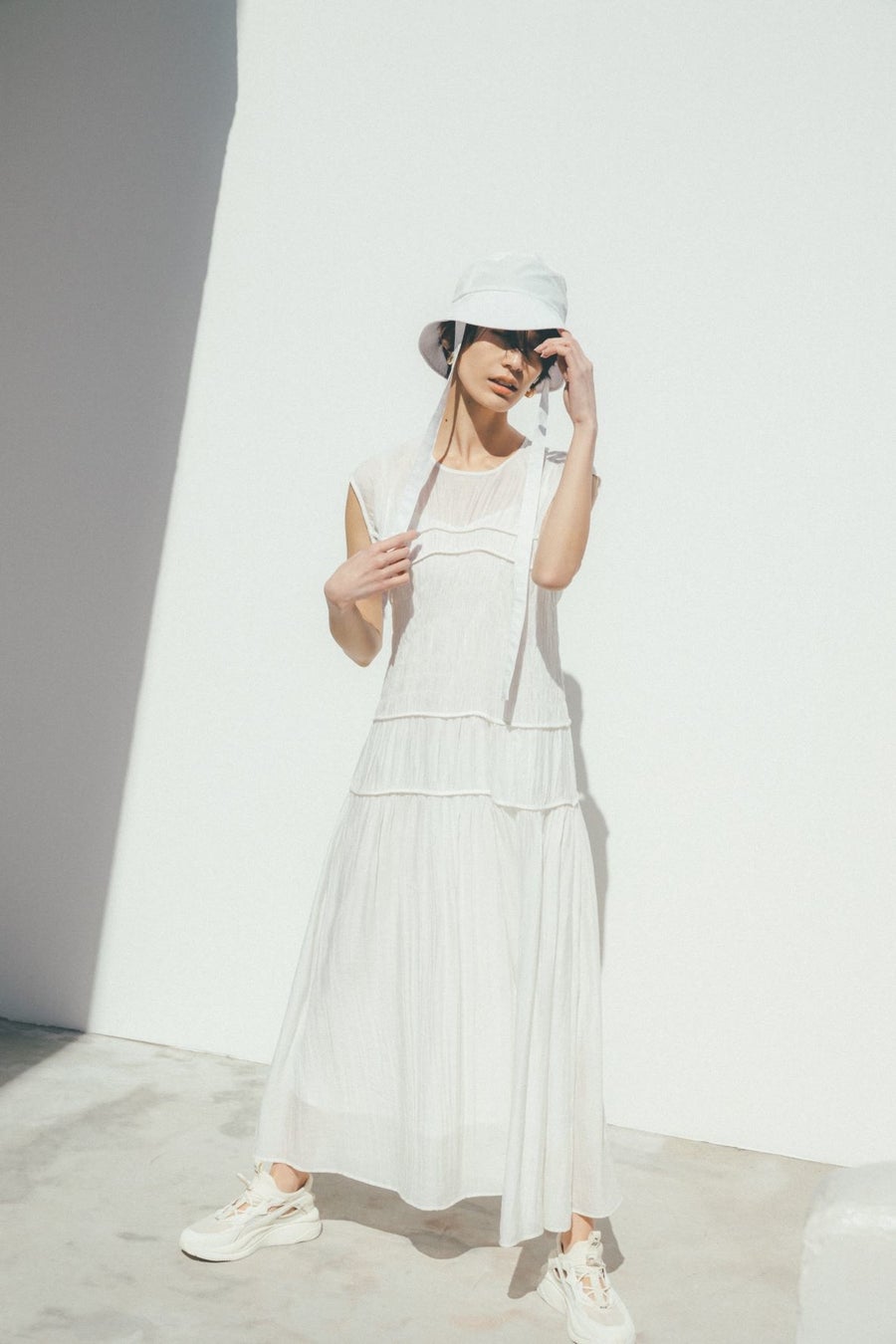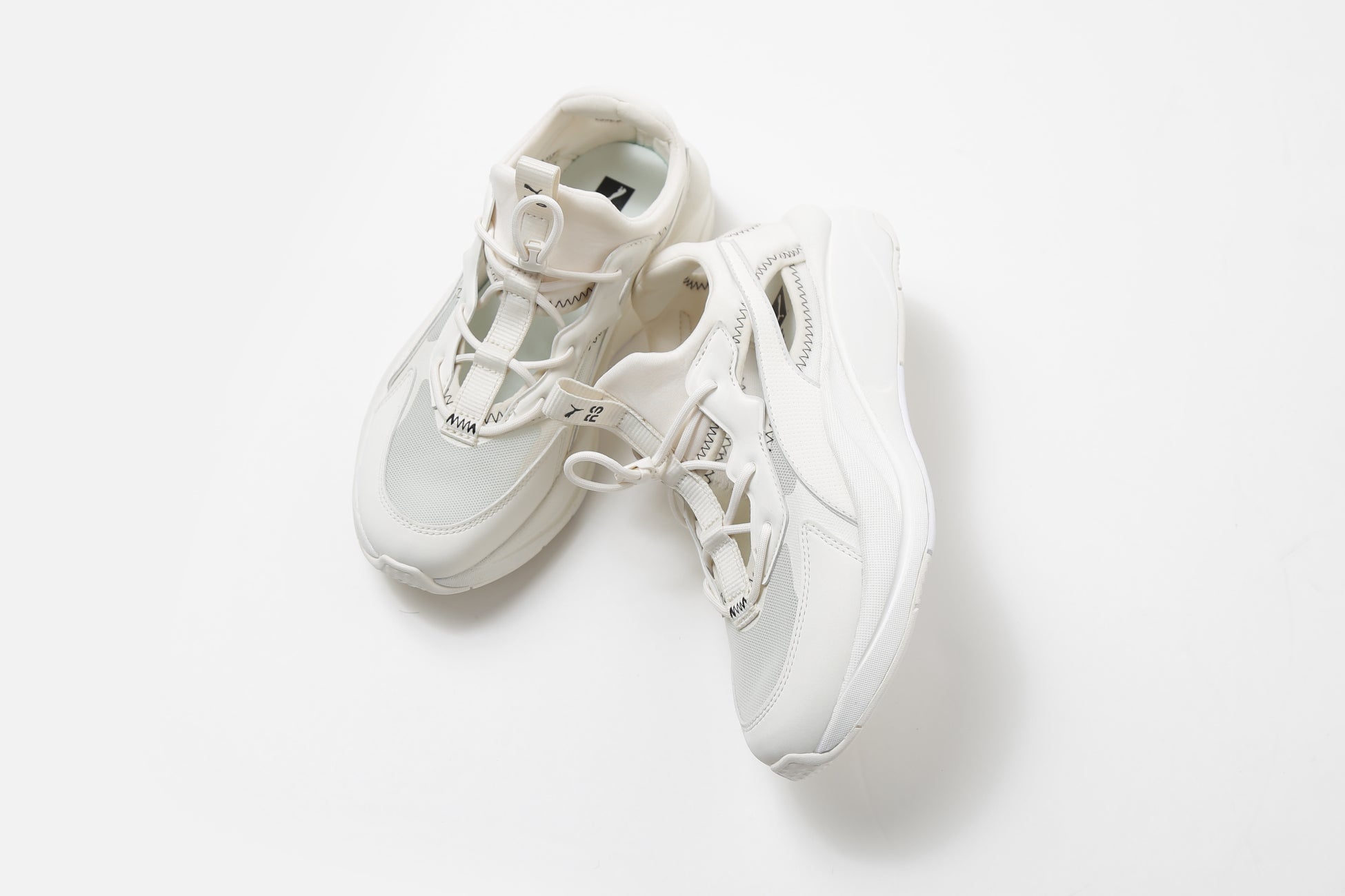 今回のコラボレーションモデルでは、スニーカーとサンダルを融合したフォルムにメッシュの透け感が加わり、オールホワイトでモードな印象に仕上げました。