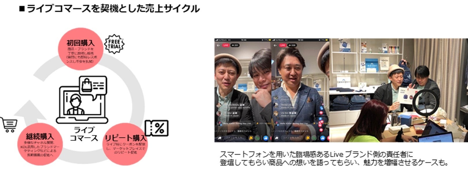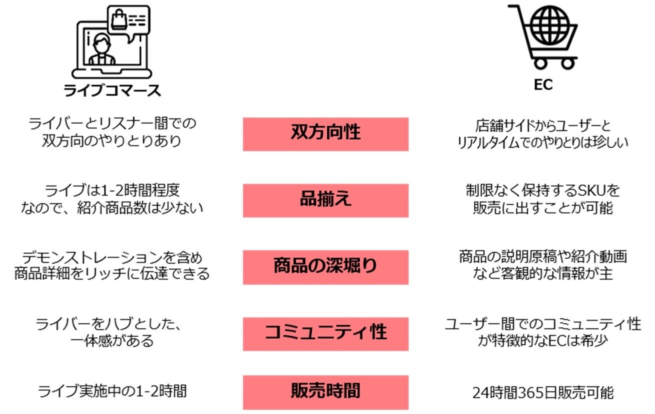 ライブコマースとECは相互補完関係で、ともに実施することでのシナジーに期待することができます。