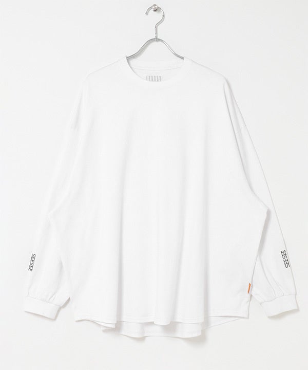 SEE SEE × S.F.Cのコラボロゴ刺繍入りビッグシルエットROUND LS TEE。素材は30Sを双糸を使用した、しっかりとした厚手の天竺素材を使用。