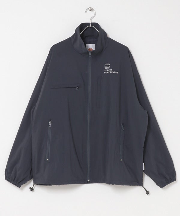 シンプルなデザインでありながら、ポケットのディテールや両脇のベンチレーションなどで機能性を持たせたオーバーサイズの新型NYLON TECH JACKET。素材はPOLY × NYLONの混繊糸を使用した独特な風合いが特徴のナイロンストレッチ素材を使用。SEE SEE × S.F.C ロゴ刺繍入りです。