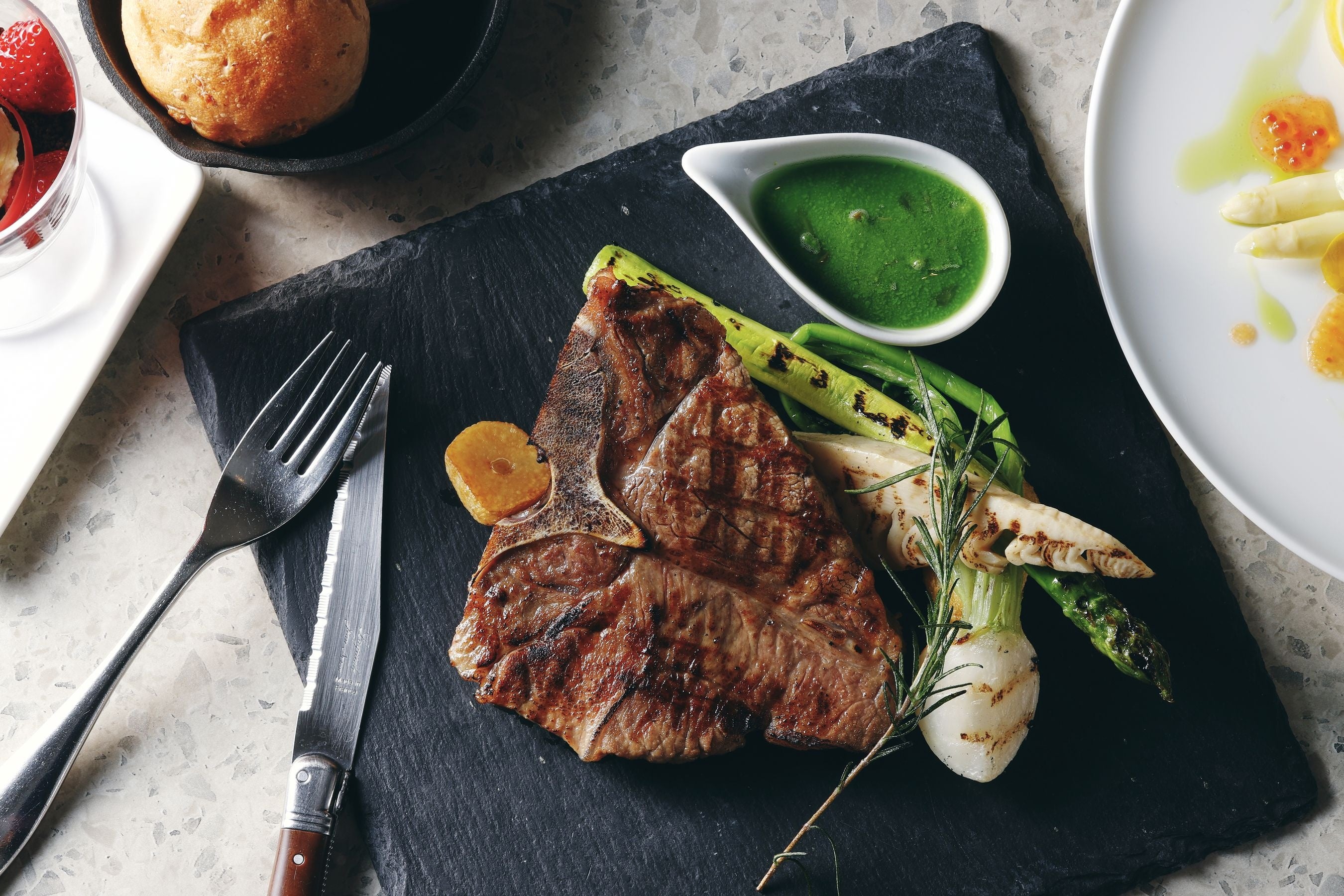 仔牛のTボーンステーキ 春の山菜サルサヴェルデ