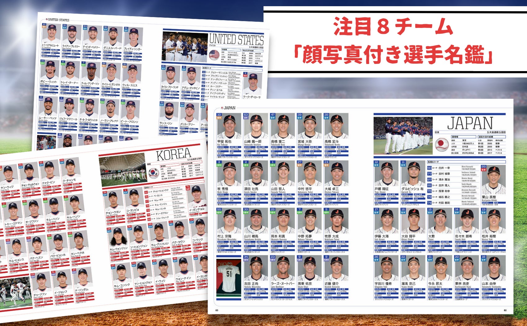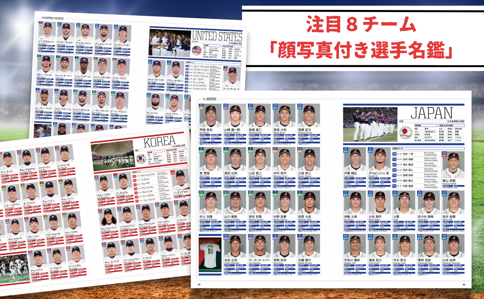(日本、アメリカ、プエルトリコ、ドミニカ共和国、オランダ、ベネズエラ、韓国、キューバ)