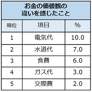 ■新婚の新生活「お金の価値観の違い」を感じるのは電気代・水道代