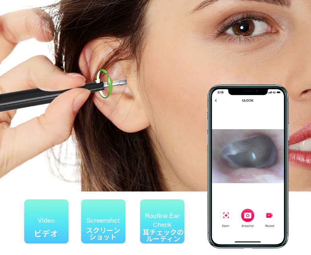 LEDライト/iOS・Androidアプリ対応/高解像度1080p/子供から大人まで安全に耳ケア/USB充電