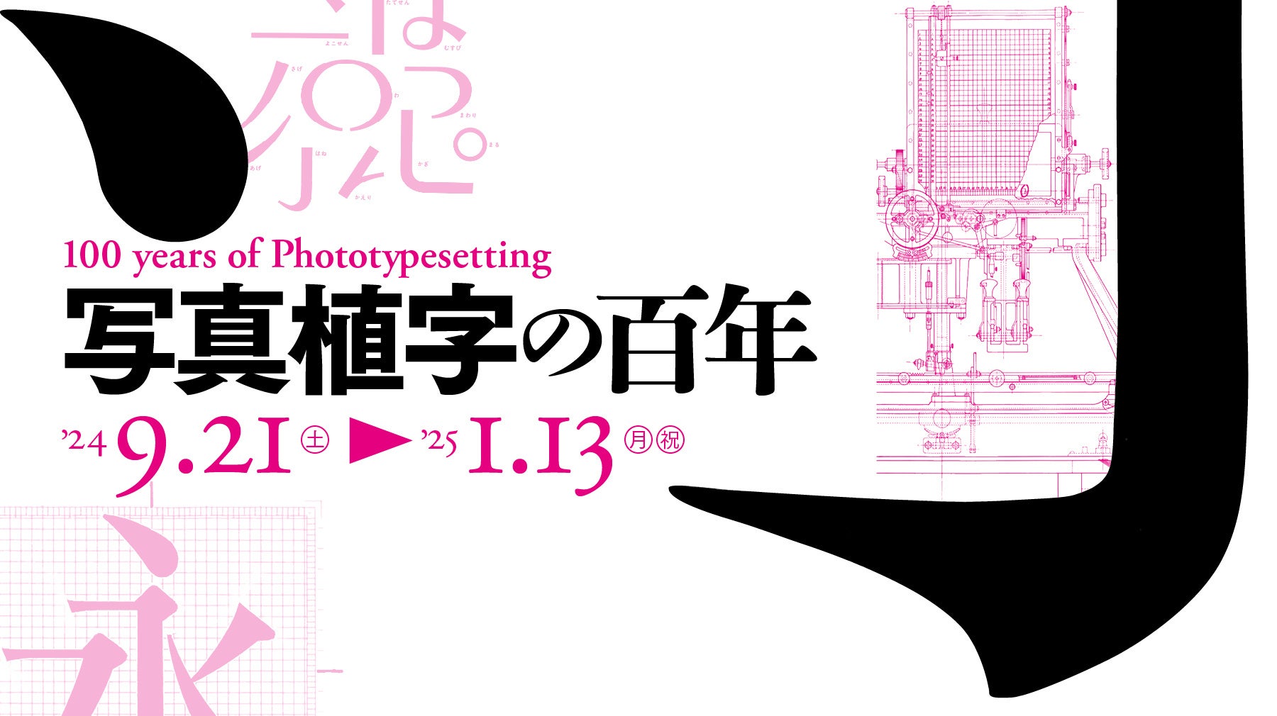 本企画展では、写真植字の発明から100年を記念し、活版印刷からデジタルフォントへと文字印刷の橋渡しを担った写真植字について、その歴史、役割、仕組み、さらには書体デザインについて紹介します。