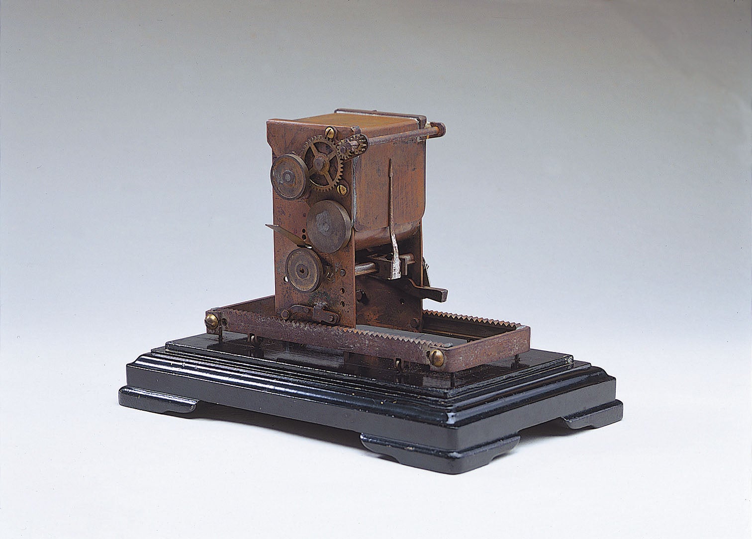 石井茂吉と森澤信夫、2人の若者によって邦文写真植字機は完成しました。森澤が機械を、石井がレンズと文字を担当し、2人の協力によって実現した写真植字機は、やがて日本で大きなひろがりをみせていきます。